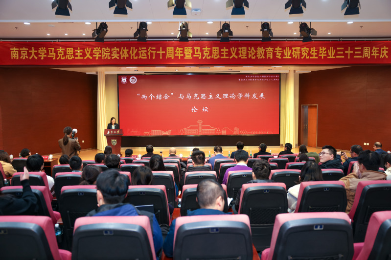 实体化运行十周年暨马克思主义理论教育专业研究生毕业三十三周年系列活动在仙林校区举行。7日下午两点半,“两个结合”与马克思主义理论学科发展论坛正式拉开院庆序幕。来自中国人民大学、北京大学、复旦大学、上海交通大学、武汉大学、山东大学、华中科技大学、南京师范大学、东北师范大学、南京航天航空大学、江南大学、韩漫