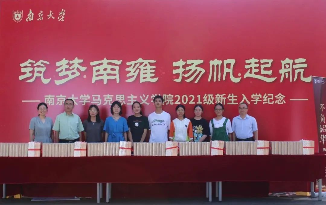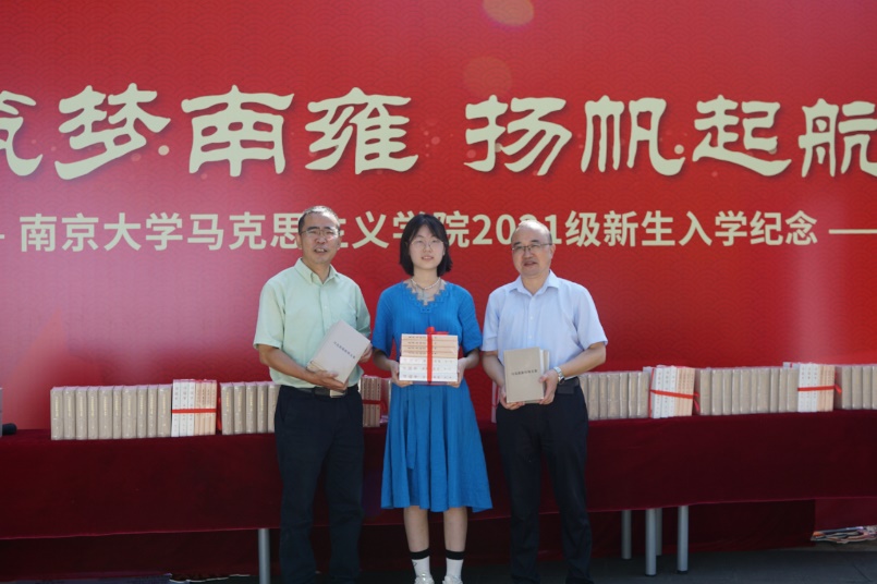 院长胡大平向本科新生们赠送书籍,并对新生们寄予深切的期许。各位新生也感受到了马院领导和老师们的关怀和期待。筑梦南雍,扬帆起航。