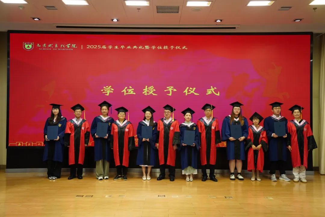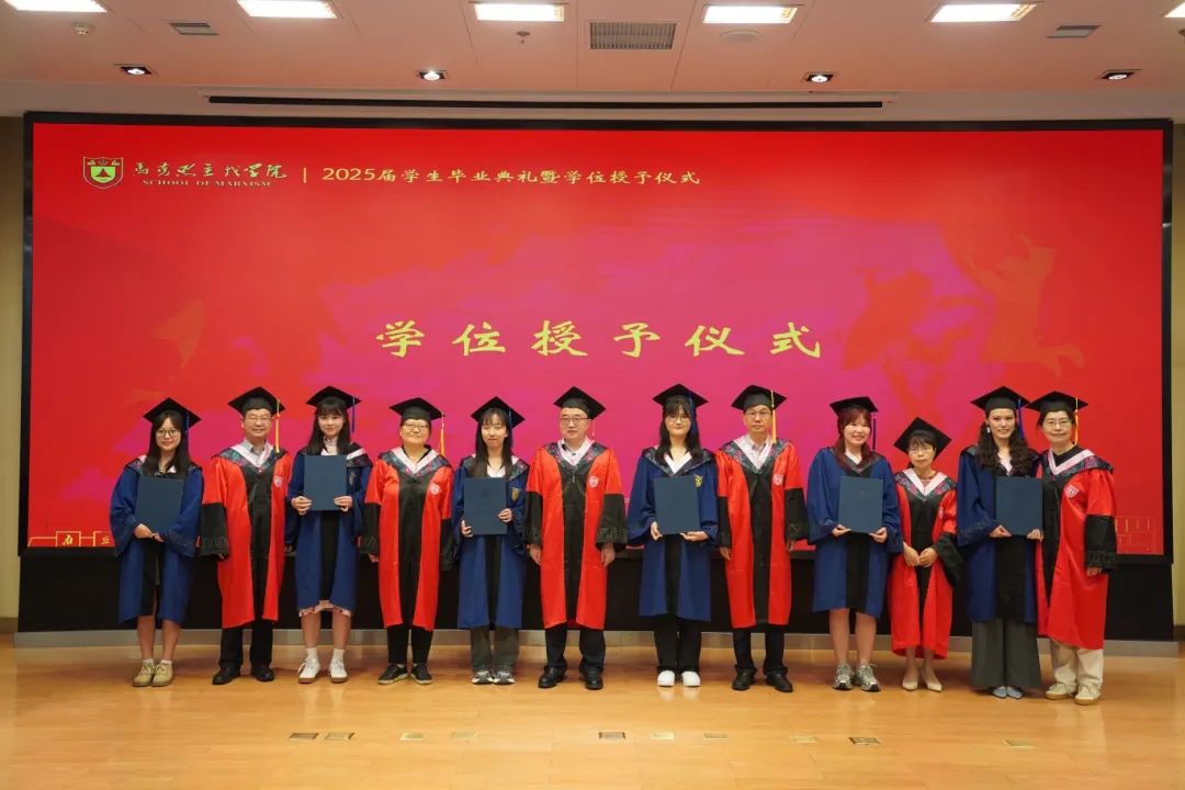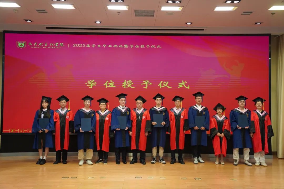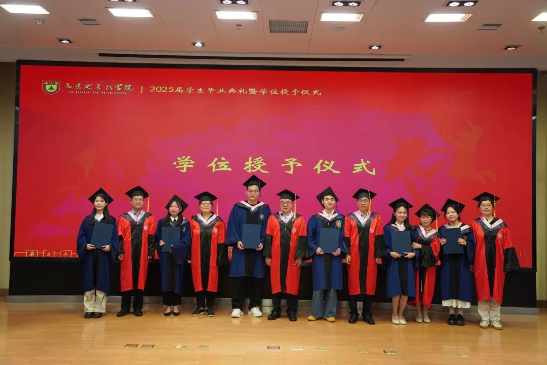 2025届毕业生一一拨穗,颁发学位证书并与大家合影留念。