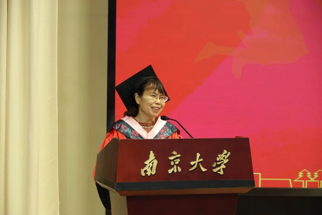 师泽若水,润物无声。在见证南马学子完成学业、开启新程的仪式后,教师代表登台为毕业生送上诚挚祝贺与殷殷嘱托。王明生老师寄语同学们既要永葆信仰之光,做真理的守护者与实践者;更要锤炼过硬本领,做时代的奋进者与开拓者。须胸怀家国天下,勇担民族复兴大任;亦要常怀感恩之心,成为温暖而坚韧的南大人。戴雪红老师寄语同学们当涵养“仙气”“灵气”与“底气”,“仙气”与“灵气”,贵在静心持守——正所谓“静则得之,躁则失之。灵气在心,一来一逝,其细无内,其大无外”,而“底气”则源于母校的鼎力支持、师长的言传身教以及同窗的深厚情谊这三重坚实根基。熊秋良老师以“金字塔”“塔基”和“塔尖”为关键词,认为南大如同一座底蕴深厚的金字塔,韩漫