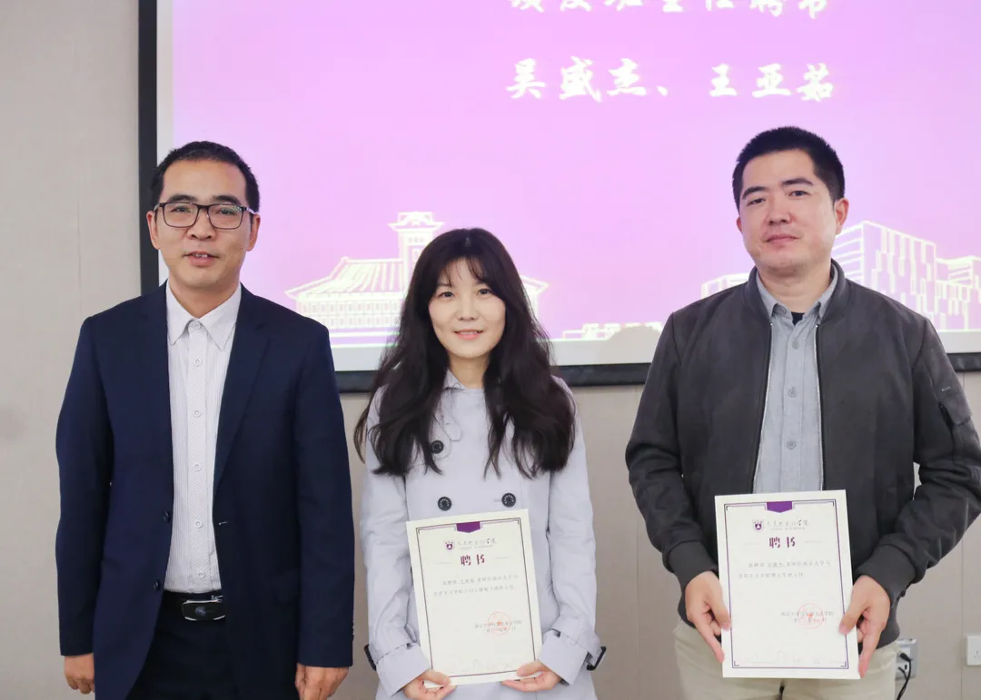 为进一步推进三全育人格局、助力学生学涯发展,学院今年首次聘任优秀青年教师担任研究生班主任。胡大平院长为博士生班主任吴盛杰老师,2021级硕士生班主任王亚茹老师颁发了班主任聘书。