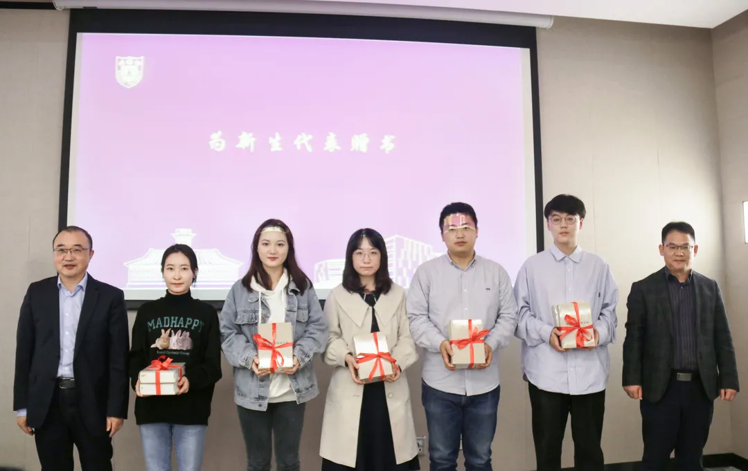 王建华书记、陈建副院长向新生代表赠送《马克思恩格斯文集》,勉励同学们读经典、悟真理,从原著中汲取养分、夯实学理基础。