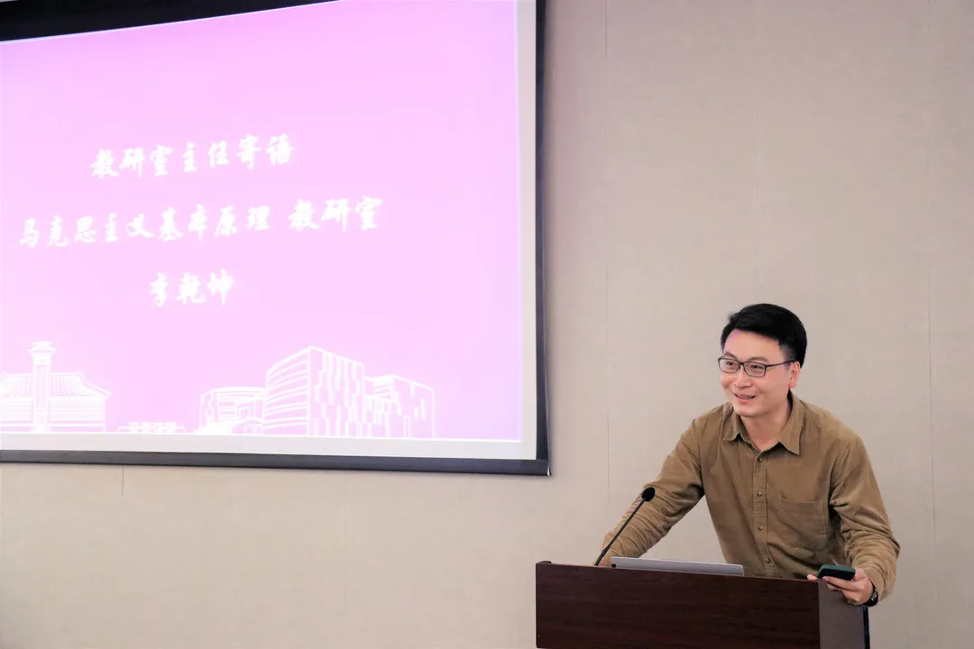 马克思主义基本原理教研室主任李乾坤老师以“马克思主义者的品质”为主题,指出马克思主义者应具备理想、学习和实践三种品质。鼓励同学们要坚持初心与使命,同时要继承马克思主义者勤奋学习的传统品质,认真研读马列经典。最后,李老师勉励同学们坚持乐观向上和务实真诚的实践态度,将理想和学习落到实处,学有所成。