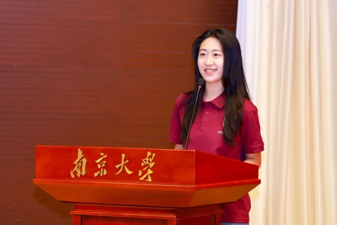 随后,新生代表们也表达了他们对崭新旅程的憧憬。本科生新生代表肖君一满怀对马克思主义理论的热忱,将其作为了高考填报的第一志愿。从初识南大深厚的历史底蕴到入学后感受到无微不至的人文关怀,她愈发确信,这里正是锤炼自我、追逐理想的沃土。在青春奋进的道路上,她呼吁全体新同学以“风雨兼程”之姿与南大同行,一道赓续文脉,勇担时代使命。