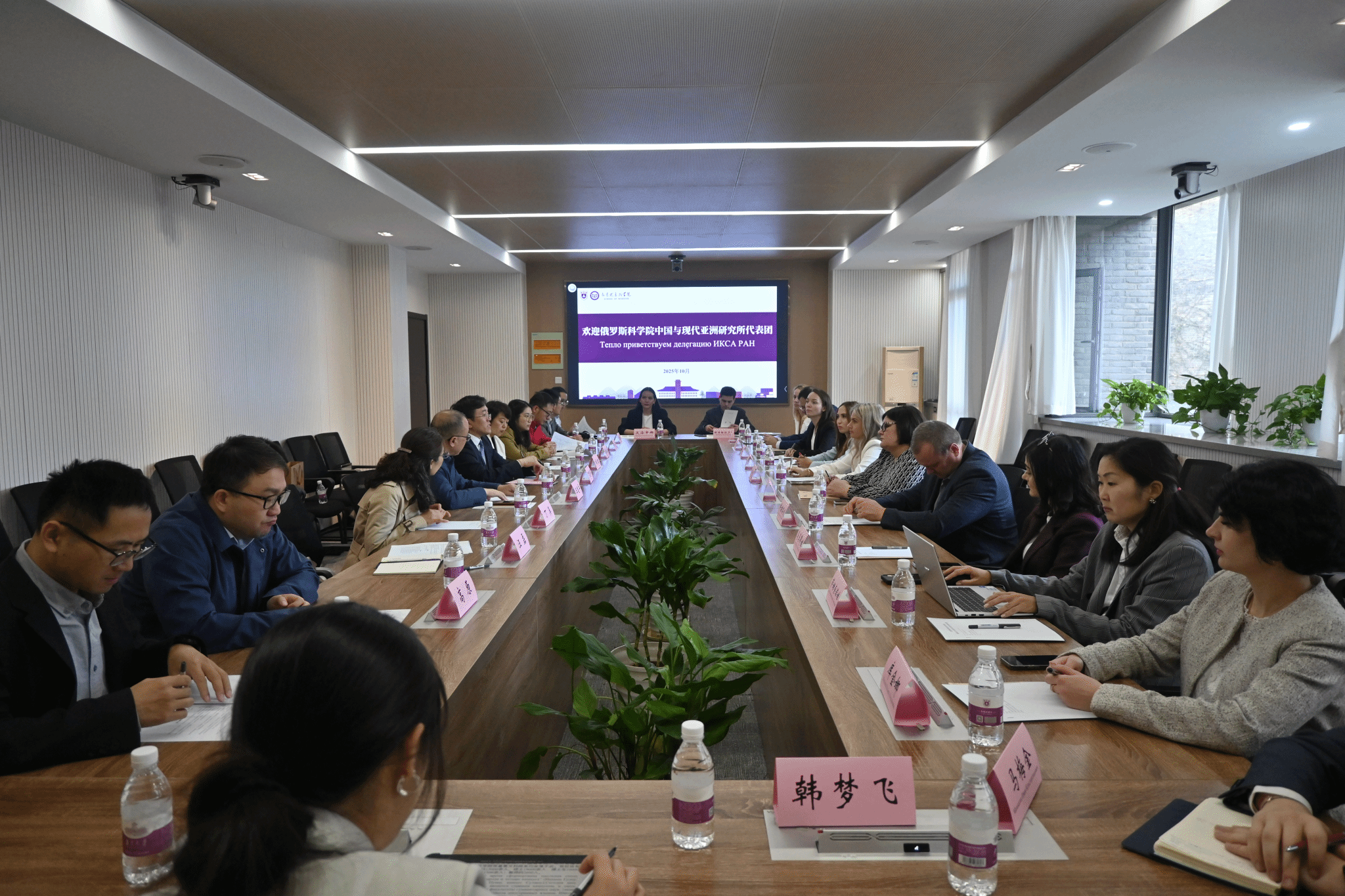 与俄罗斯科学院中国与现代亚洲研究所代表团在圣达楼二楼会议室进行交流座谈。韩漫