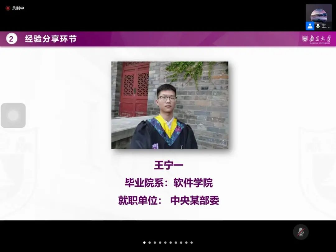 王宁一学长主要为大家介绍了面试和工作体验。建议大家在工作中,要讲政治、守规矩,具体到个人面试而言,就是要讲党性,有法制意识。其次,政治站位要高。一定要把握人民情怀,考虑人民群众的长远利益。第三是放平心态。此外,学长建议同学们可以多阅读报考部门的公众号、机关报刊,了解报考部门的决策并在面试答题中应用出来。