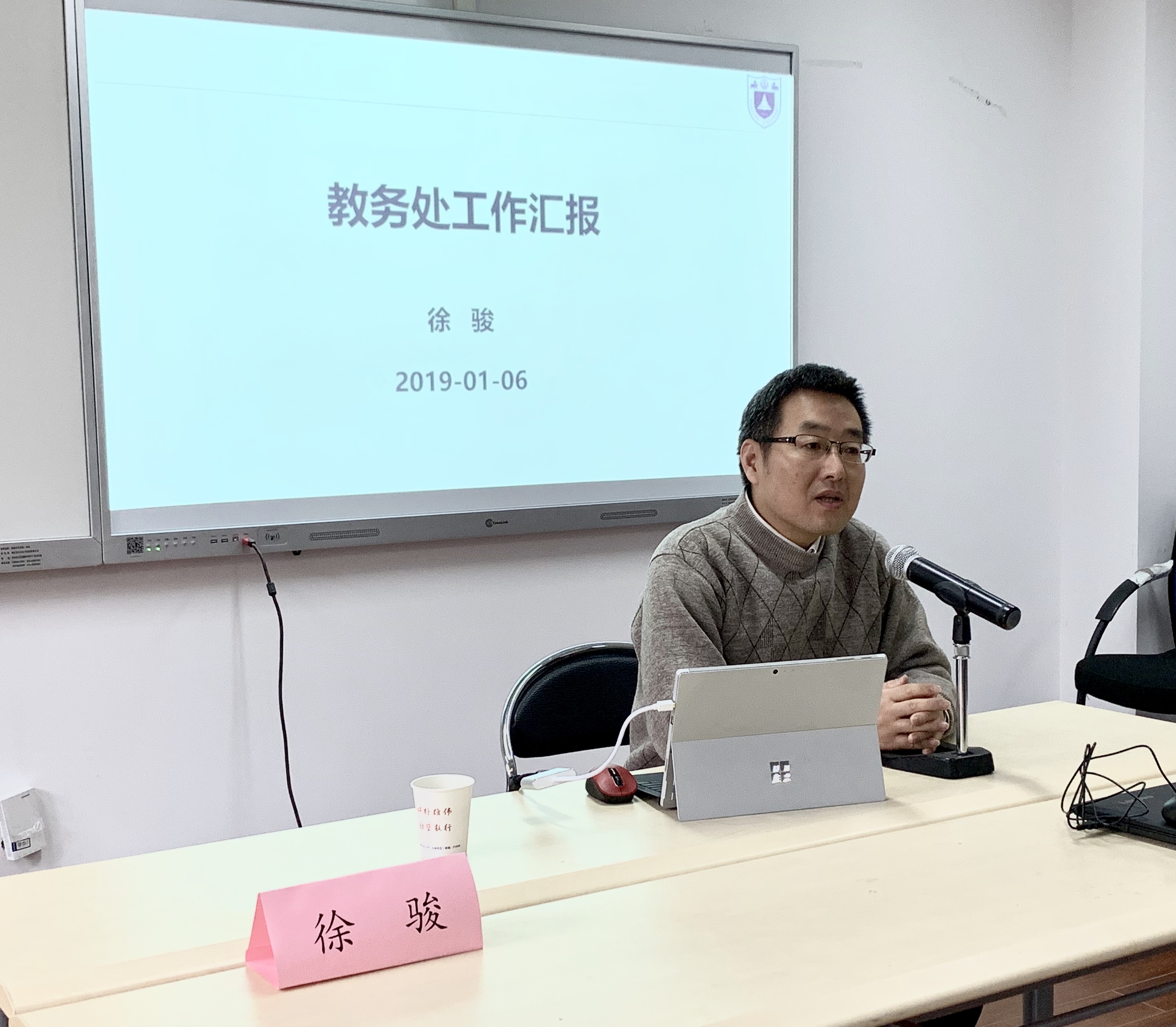 教务处工作具体内容为载体展开教务处工作汇报。徐骏处长以“一个纲领性”讲话,一个战略性意见为引导,指出教育部对于本科教学的规范,即:做好天职事,干好良心活。继续关注双一流建设中的本科人才培养,运用当前本科教学工作中的经验,深化以学生发展为中心的“三三制”本科教学改革,办中国最好的本科教育。