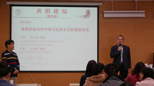 教授、全国高校马克思主义理论学科研究会副会长陈占安教授作了题为“准确把握当代中国马克思主义的最新成果”的讲座。