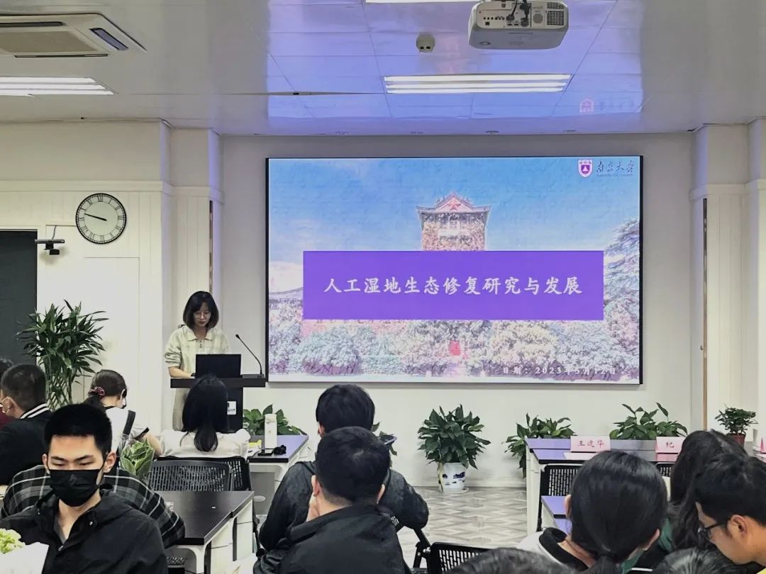 以实际行动践行生态文明理念,生命科学学院博士生李启明、赵雨梦同学介绍了她们在湿地和动物保护方面的科研经历。李启明同学以“人工湿地生态修复研究与发展”为题,分享了她在建筑废弃物在人工湿地中的资源化利用、全尺度人工湿地修复能力检测等方面的研究思路和方法。赵雨梦同学以“和麋鹿”为题,分享了她在大丰麋鹿国家级自然保护区发现的麋鹿生活趣事,为大家介绍了她在麋鹿认知、社会文化、决策方式与现象等问题上的研究心得。两位同学的分享各有风格,兼具理论性、知识性、故事性、趣味性,让大家充分体味到生态文明建设的实践内容、科研方法与重大意义。