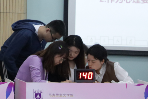 “心灵守卫”队不负所望,成功晋级决赛。决赛分为必答题、抢答题、案例分析三个环节,在时昱副书记和刘晶月老师的悉心指导与陪伴下,“心灵守卫”队在前两个环节拔得头筹,一马当先,并在案例分析环节展示了韩漫
