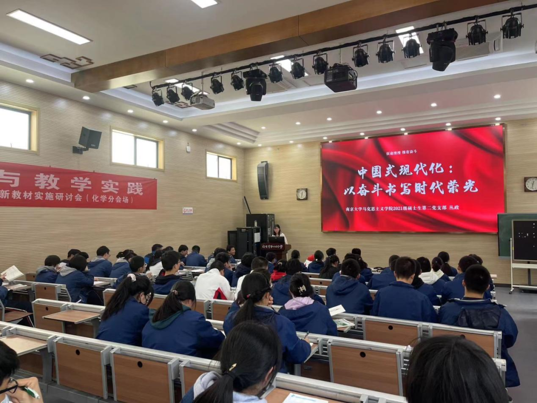 杨柳青青,春和景明,在似锦花团的簇拥下,党支部成员来到坐落于玄武湖畔的南京十三中,为同学们带来了一场绘声绘色的主题团课。本次团课以“中国式现代化:以奋斗书写时代荣光”为主题。跟随主讲人丛政,同学们打破时空的阻隔,站在新时代回望过去,立足课桌前放眼全国,在大历史的激荡风云与小人物非凡经历中,读懂中国式现代化。