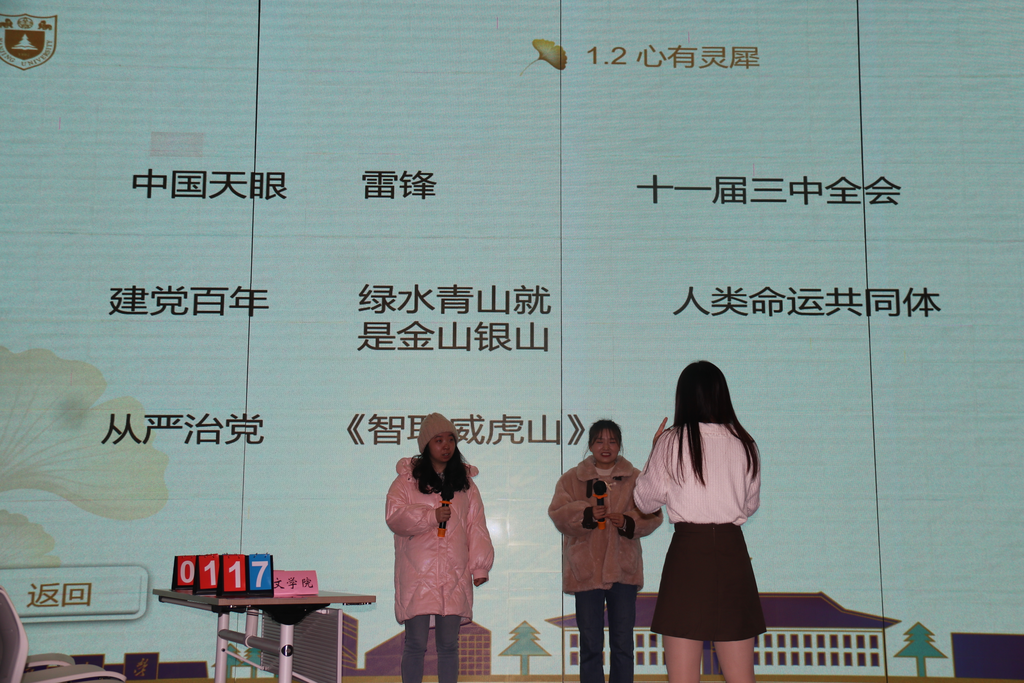 各团队精神高度集中,思路敏捷,充分展现了南大学子的昂扬风采。在团队抢答环节中,哲学系团委书记郭明姬老师还带领全场党员师生重温了入党誓词,坚定了党员师生为人民服务、为国家贡献的决心。