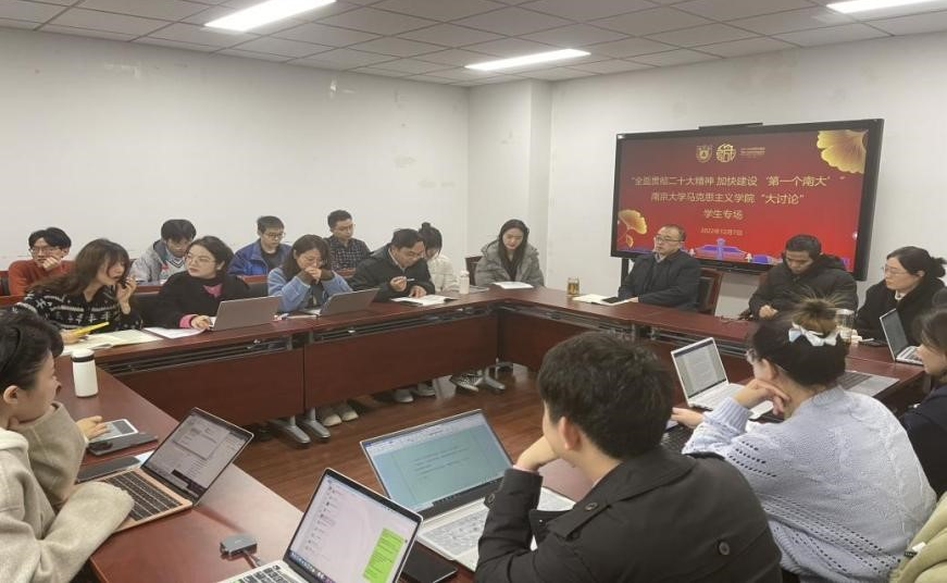 如何发挥重点学科的独特优势,立足于人才培养和创新发展,加快建设“第一个南大”表达了观点。三是落实立德树人根本任务,同学们对如何发挥马克思主义理论学科优势,更好地实现思政课立德树人的作用提出了建议。四是营造校园文化氛围,学生代表对提升南大学子校园文化认同,鼓励青年学生讲好南大故事,传承南大精神展开了讨论。五是优化学科培养方式,同学们对学校不同专业间加强交流沟通,进一步拓宽青年学生知识边界表达了观点。六是加强基础设施建设,学生代表对宿舍热水器、校园充电桩、图书馆电源、自习室规模的进一步优化建设提出了建议。时昱老师,刘晶月老师对同学们关注的热点问题进行了初步回应,并鼓励同学们利用“韩漫