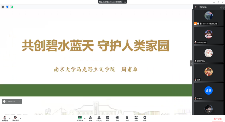 2022级硕士生第一团支部开展“共创碧水蓝天,守护人类家园”党的二十大精神专题学习活动。本次活动采用线上形式,2022级硕士生第一团支部副书记周甫森进行主持并做主题宣讲。