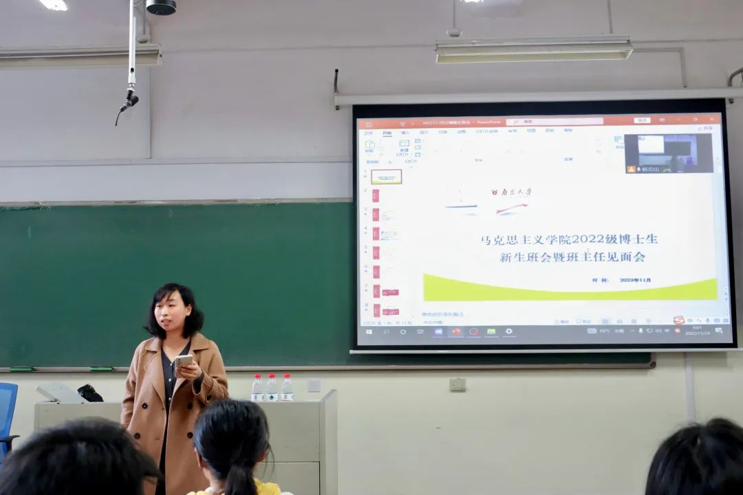 副教授及博士新生班主任武海宝老师主讲,学院团委书记、辅导员刘晶月老师主持。武海宝老师围绕博士阶段的学习和生活带来了干货满满的精彩分享,为2022级博士新生开启学术道路的新篇章做了方向指引。