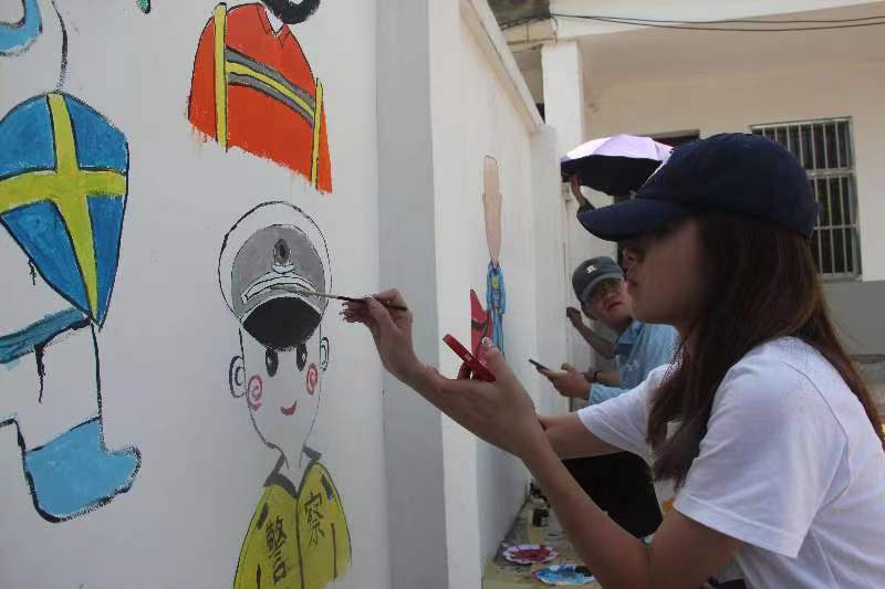 侯美祺:我记得在我们刚完成墙绘时,有个老奶奶拄着拐杖站在远处看我们,当时我们的队长和其他同学就去把她搀扶了过来,希望能跟她展开交流,倾听她的意见。在交谈过程中,我们了解到这位老奶奶是听到邻居说,村里来了一群大学生,在画画,所以就想来看一看我们。当时我的心里涌现出这样的感受,那就是我们今天所做的事情,不仅仅最终以绘画的形式展示在墙体上,同时我们也给村庄带来了新鲜的血液、年轻的力量,让这个村子有了一点点变化,这是令我印象深刻的事情。