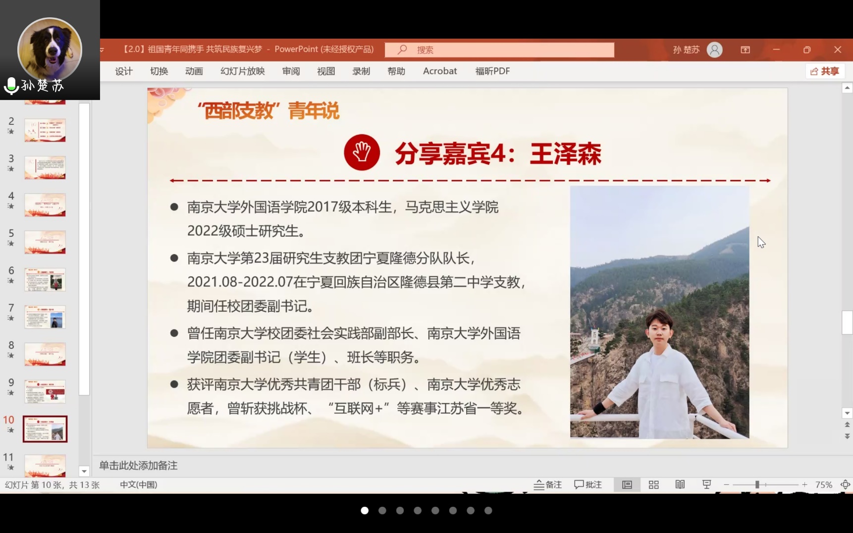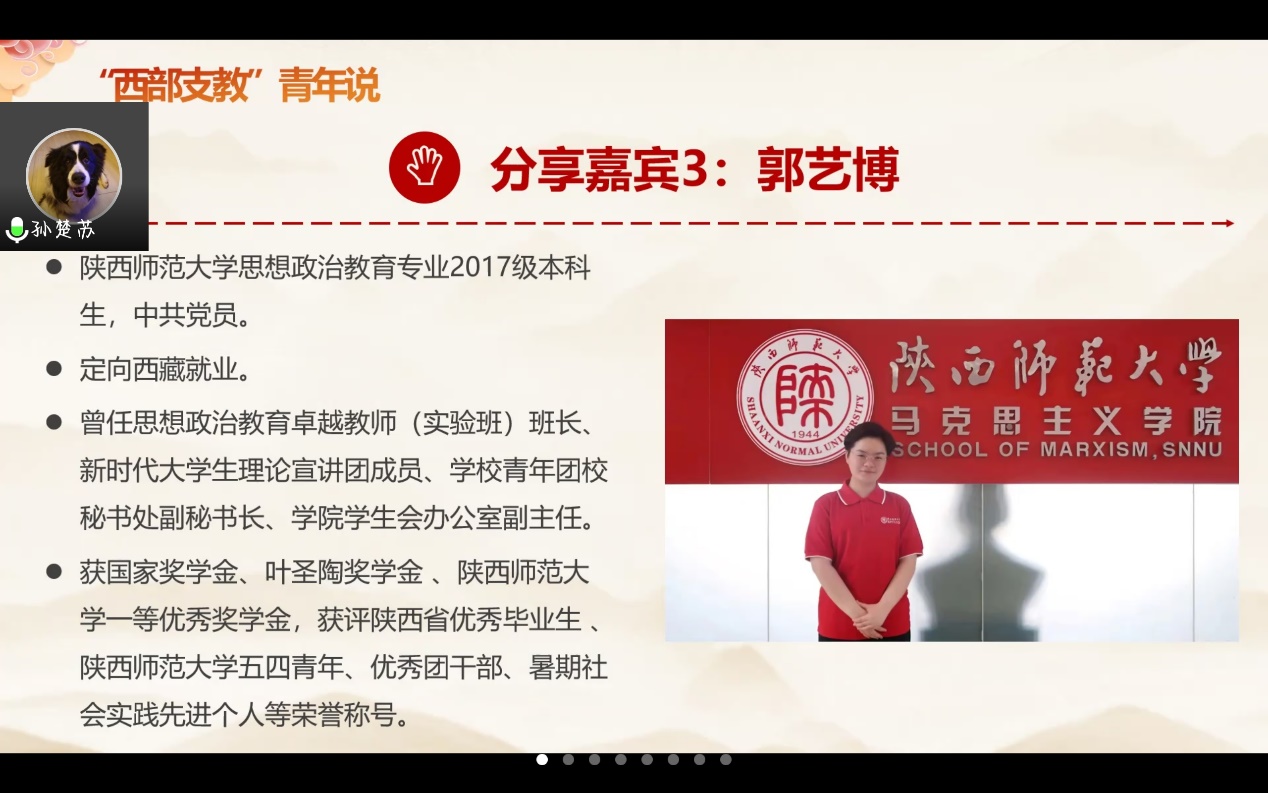 港台青年与内地青年同根同源,拥有共同记忆和相似的文化背景,在祖国更广阔的大地上,也有这样一群青年选择响应党和国家的号召,扎根西部,奉献自己。党日活动的第三部分由两位赴西藏和宁夏支教的同学分享他们的理想之路。陕西师范大学韩漫