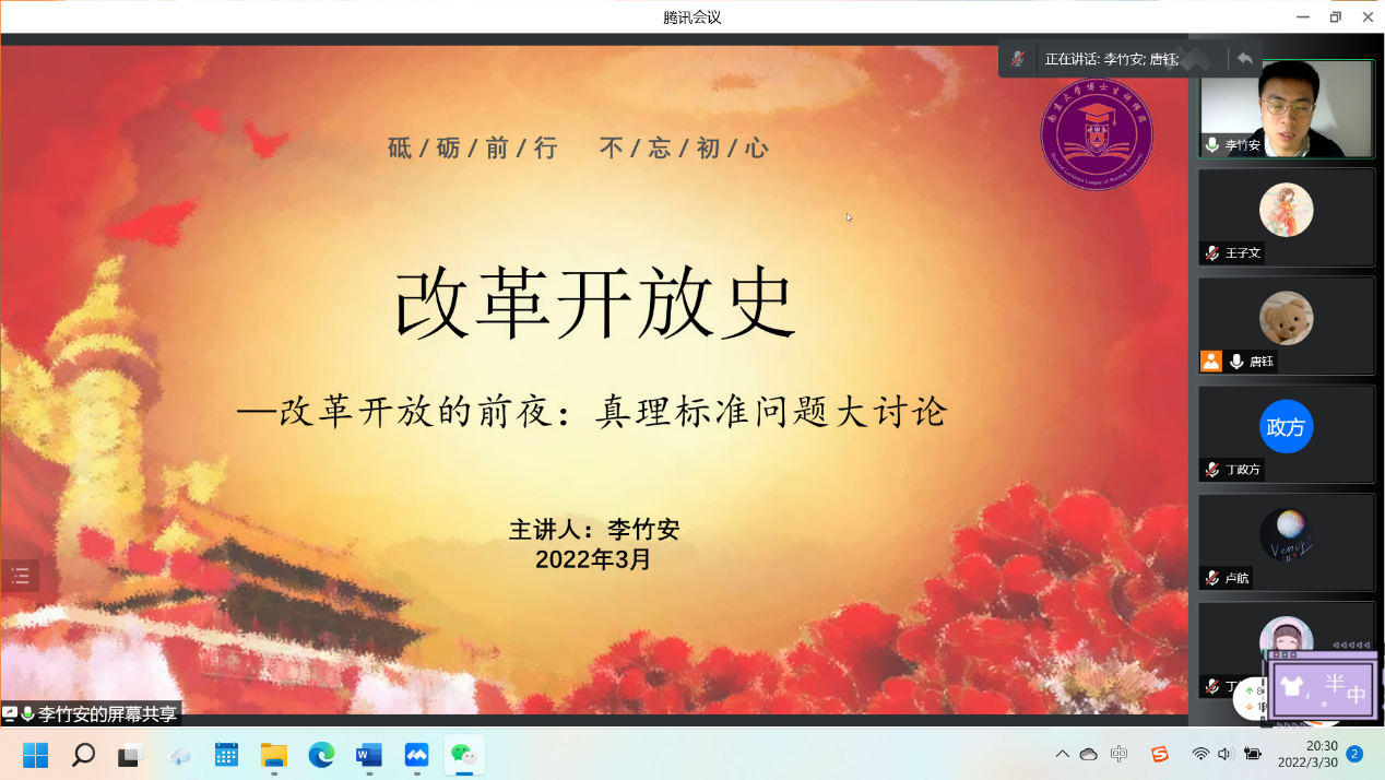 胡福明教授的脚步,围绕“关于真理标准问题大讨论”开展线上党日活动,活动由韩漫