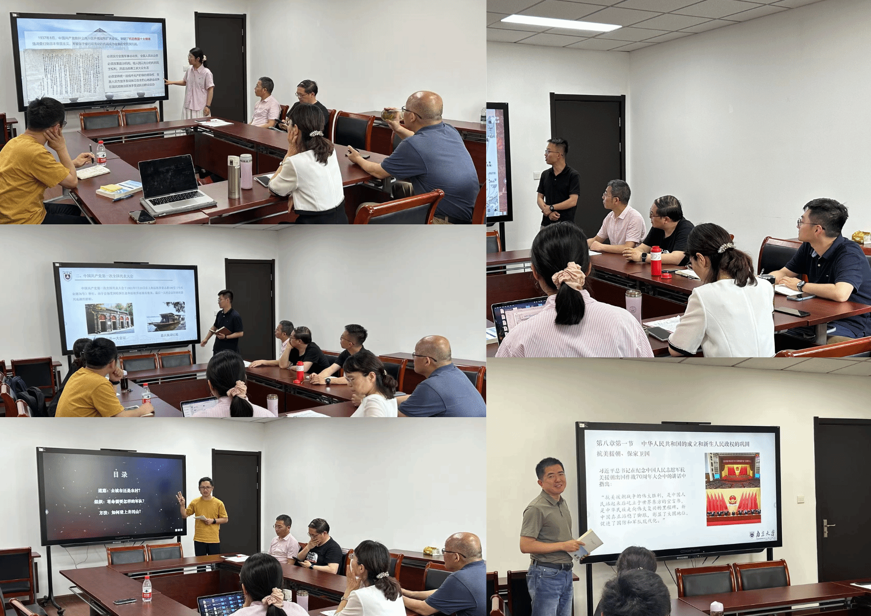 本次备课会由中国近现代史纲要教研室主任熊秋良教授主持,许良、林棵、吴盛杰、谢任、周瑞瑞五位青年教师依次进行了精彩的教学展示。展示结束后,杨丹伟、熊秋良、游海华、倪春纳、黄骏、王楠等教研室教学经验丰富的教师逐一进行深入点评。