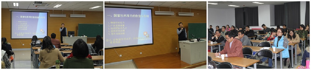 王明生院长在报告中,从国家社科项目的价值与作用、立项与申报、申报类型、申报要四个面进行论述,其中重点讲解了项目的申报要点。在报告的开始,王院长便从增强学科力、培优质科研人才和个人职称晋升等方面强调了申请国家社科项目的价值与作用。他指,国家社项目是衡量学科水平、队伍研究实力的重要依据。接下来,王院长又对立项与申报申报类型问题做了深入讲解。紧接着,在报告的主要部分申报要点上,他用“积累是基础,题是核心,证是关键”十五个字高度概括了国家社科项目的申报要点。他说,研项目的成申报首先取决申报者对课题的前期成果和积累,这些科研成果要有稳定的研领域和方向,报者对研究领域新趋势、新精神、新观点应高度重视。另外,一个好的选是成功申报的前,报者要精心组织、面动员,吃透申报说明指南和公告,他又从宏观微观两个方面进行了具的解释。对于项目论,明生教授指出,要把握20个字:前沿点、结构路径、重点难点、新思路、队伍文献。他以家社科基金项目通讯评审评价指标参照,详细介绍了申报要点,用曾指导过的申报实例作出明。