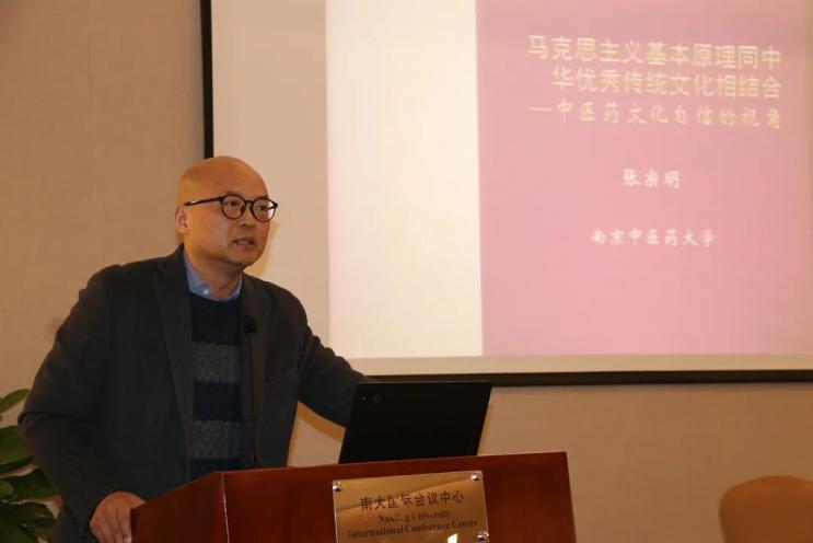 The dean of NJU’s School of Marxism, Professor Hu Daping and Zhang Zongming, dean and professor of NJUCM’s School of Marxism, delivered speeches at the first part of the keynote speech section. Focusing on several major issues in the construction of the course “Basic Principles of Marxism” in the new era, Hu Daping discussed the three pairs of contradictory relationships between the integrity and profundity, classicality and contemporary, as well as popularity and elitism of the ideology and political courses in view of the current teaching status, teaching environment, and teaching objects of the Marxist discipline. Zhang Zongming explored the topic of combining Marxism and excellent Chinese traditional culture from the perspective of self-confidence in traditional Chinese medicine (TCM), and discussed the internal logical connection between TCM culture and basic principles of Marxism from the dimensions of teaching and research, as well as the experience of combining the two.
